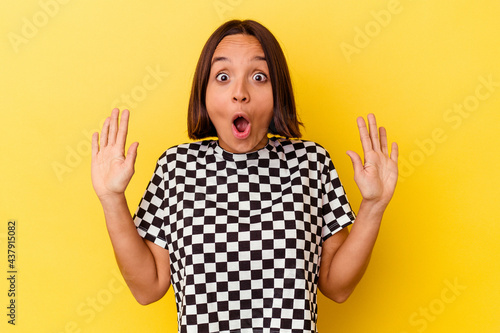 Young mixed race woman isolated on yellow background having an idea, inspiration concept.