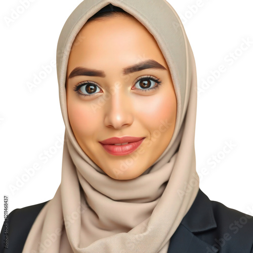 Young Muslim woman with hijab headscarf isolated on transparent background