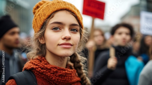 young people standing strong in picket protest during a demonstration : Generative AI
