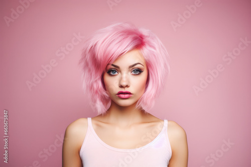 Young pink haired woman on a clean background