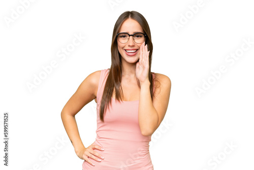Young pretty caucasian woman over isolated background shouting with mouth wide open
