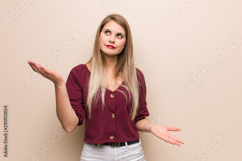 Young russian woman confused and doubtful