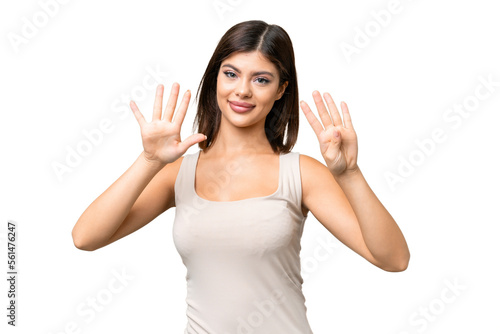 Young Russian woman over isolated chroma key background counting nine with fingers
