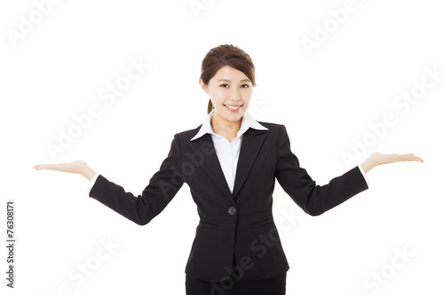 young smiling businesswoman with showing gesture