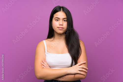 Young teenager Asian girl over isolated purple background keeping arms crossed