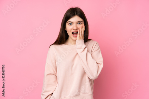 Young Ukrainian teenager girl over isolated pink background with surprise and shocked facial expression