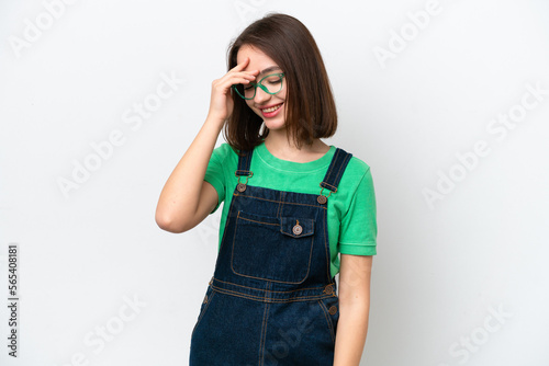 Young Ukrainian woman isolated on white background laughing