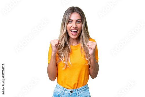Young Uruguayan woman over isolated background celebrating a victory in winner position