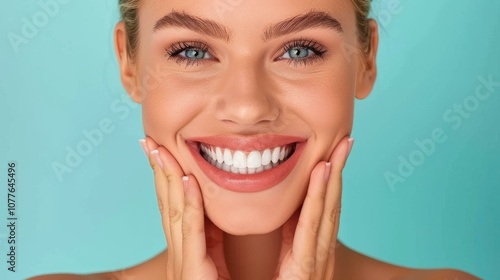 Young woman beams with perfect teeth, showcasing her bright smile and the importance of dental health and care.