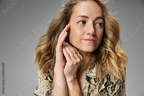 Young woman displays confidence and beauty with vitiligo, highlighting uniqueness and elegance