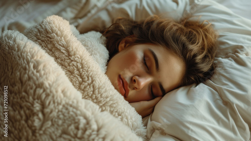 Young Woman Enjoying Peaceful Sleep in Cozy Bed