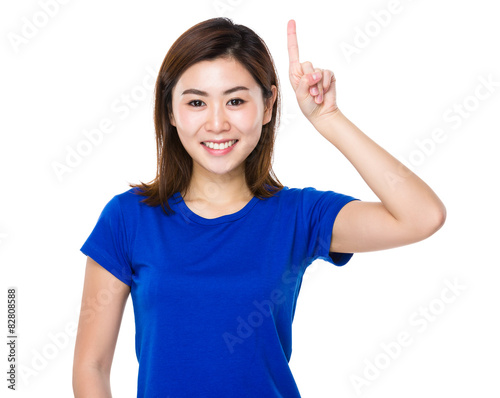 Young woman finger pointing upwards