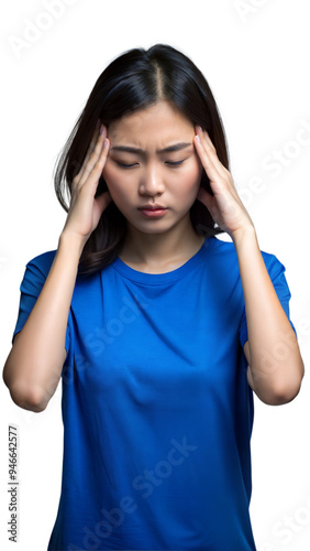 Young Woman in Blue Shirt Holding Head in Pain While Experiencing Stress