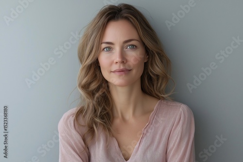 Young Woman in Casual Blouse Smiling Naturally. Elegance and Confidence in Modern Lifestyle Photography