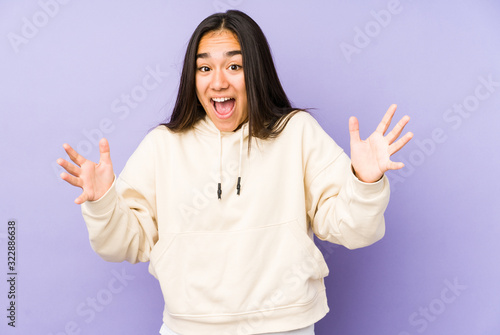 Young woman isolated on a purple background celebrating a victory or success, he is surprised and shocked.
