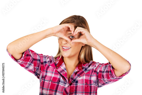 Young woman making a heart hand gesture