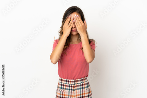 Young woman over isolated background covering eyes by hands