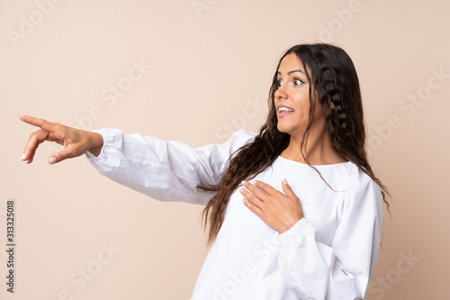 Young woman over isolated background pointing finger to the side