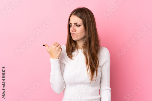 Young woman over isolated pink background