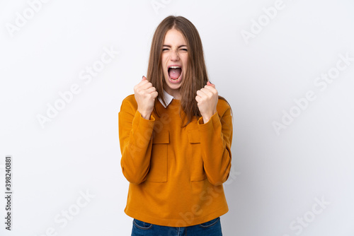 Young woman over isolated white background frustrated by a bad situation
