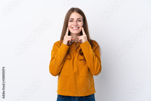 Young woman over isolated white background smiling with a happy and pleasant expression