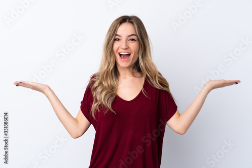 Young woman over isolated white background with shocked facial expression