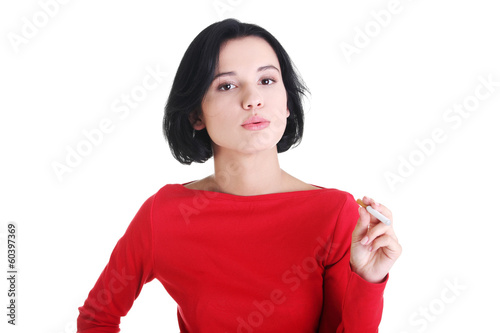 Young woman smoking electronic cigarette -ecigarette