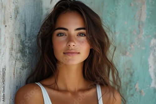 Young Woman Summer Outdoor Portrait White Top Long Hair