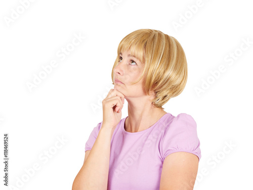 Young woman thinking looking up