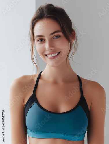 Young Woman Wearing Blue Sports Bra Activewear
