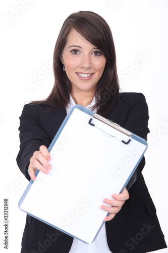 Young woman with a clipboard