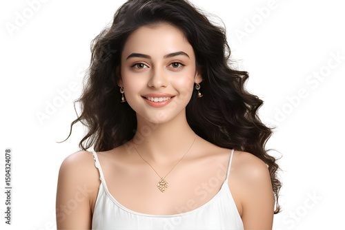 Young Woman with Glowing Skin and Natural Makeup Applying Facial Cream and Posing with Varied Expressions on White Background