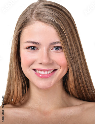 Young woman with gorgeous beautiful long straight hair. Blond Hair.