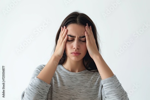 Young woman with hands on head of migraine