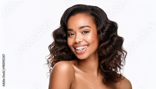 Young Woman with Natural Makeup and Curly Hair Isolated on White Background, Clipping Path, Full Depth of Field