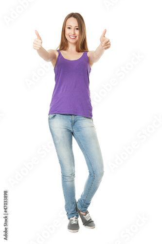 Young woman with thumbs up