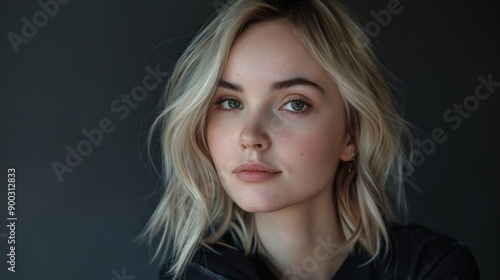Young Woman With Wavy Blonde Hair Posing Against a Dark Background